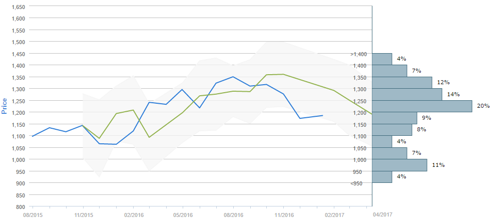 Traders who were asked regarding their longer-term views on gold between December 10 and January 10 expect, on average, to see the metal around 1,200 in early April. Generally, 37% of participants believe the price will be above 1,250 in ninety days. Alongside, 28% (-1%) of those surveyed reckon the currencies will trade in the range between 1,000 and 1,200 over the next three months.