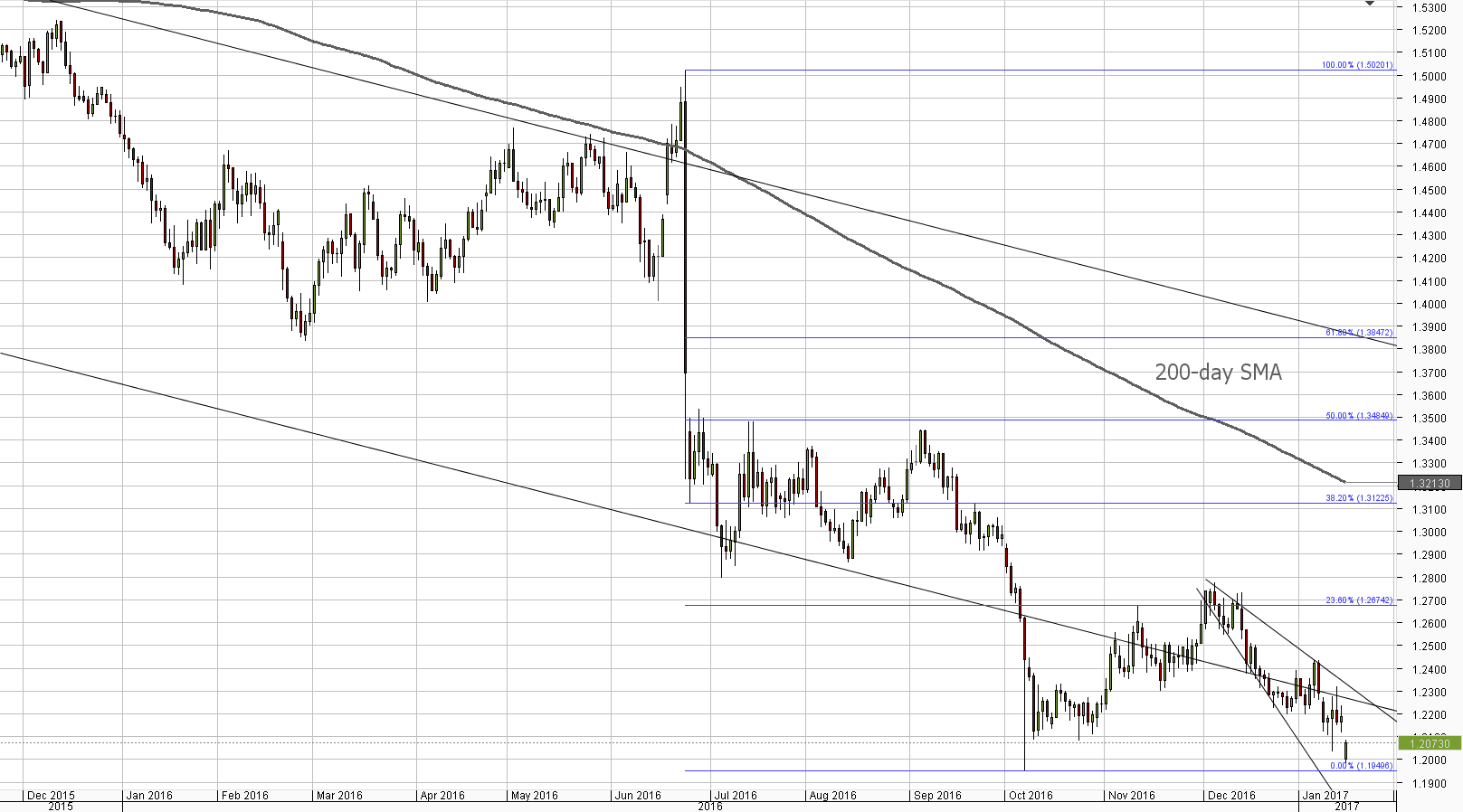 Although the British currency managed to edge higher against the US Dollar on Friday, it still failed to maintain trade above the 1.22 level. Nevertheless, the 1.2150 threshold was preserved, but the Cable opened with a hard bearish gap today, now barely managing to hold above 1.20. Political factors, namely UK's access to the single market after Brexit is fully implemented, keep weighing on the Pound. Nevertheless, the Sterling is likely to erase some of the losses that occurred during the gap, while the weekly S1 acts as the closest resistance at 1.2045, which could prevent the GBP/USD pair from recovering.