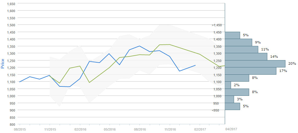 Market participants foresee the price of Gold being around 1,200 in April