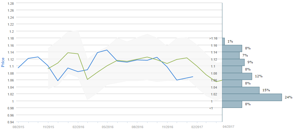 Average forecast says EUR/USD will trade around 1.04 in April