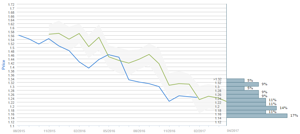 By the end of the next three months traders expect the Cable to fall under the 1.22 major level, as 53% of survey participants believe so. While the current price is around 1.23, the average forecast for April 23 is 1.2226. However, the 1.14-1.16 interval is now the most popular one, having 17% of the votes, while on the second place is the 1.18-1.20 price range, with 14% of poll participants choosing it. Furthermore, the 1.16-1.18, the 1.20-1.22 and 1.22-1.24 intervals were each chosen by 11% of the voters.