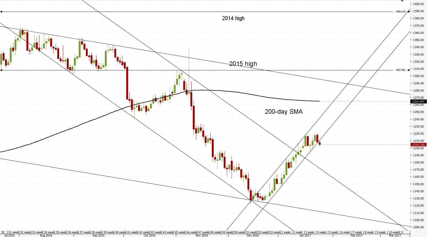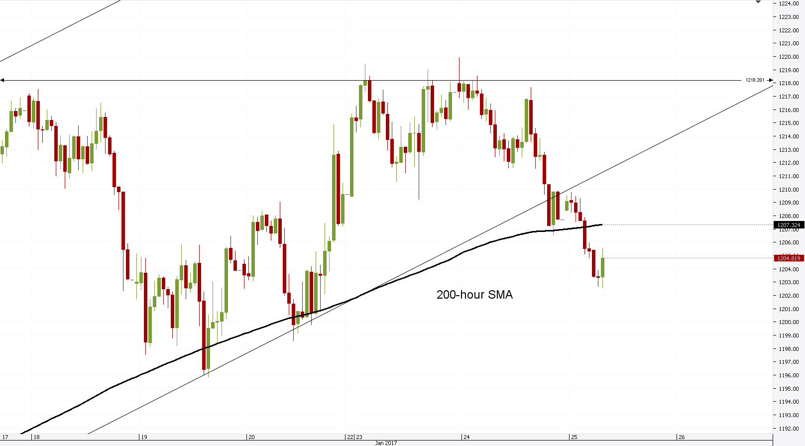 - The bullion opened at 1,207.68