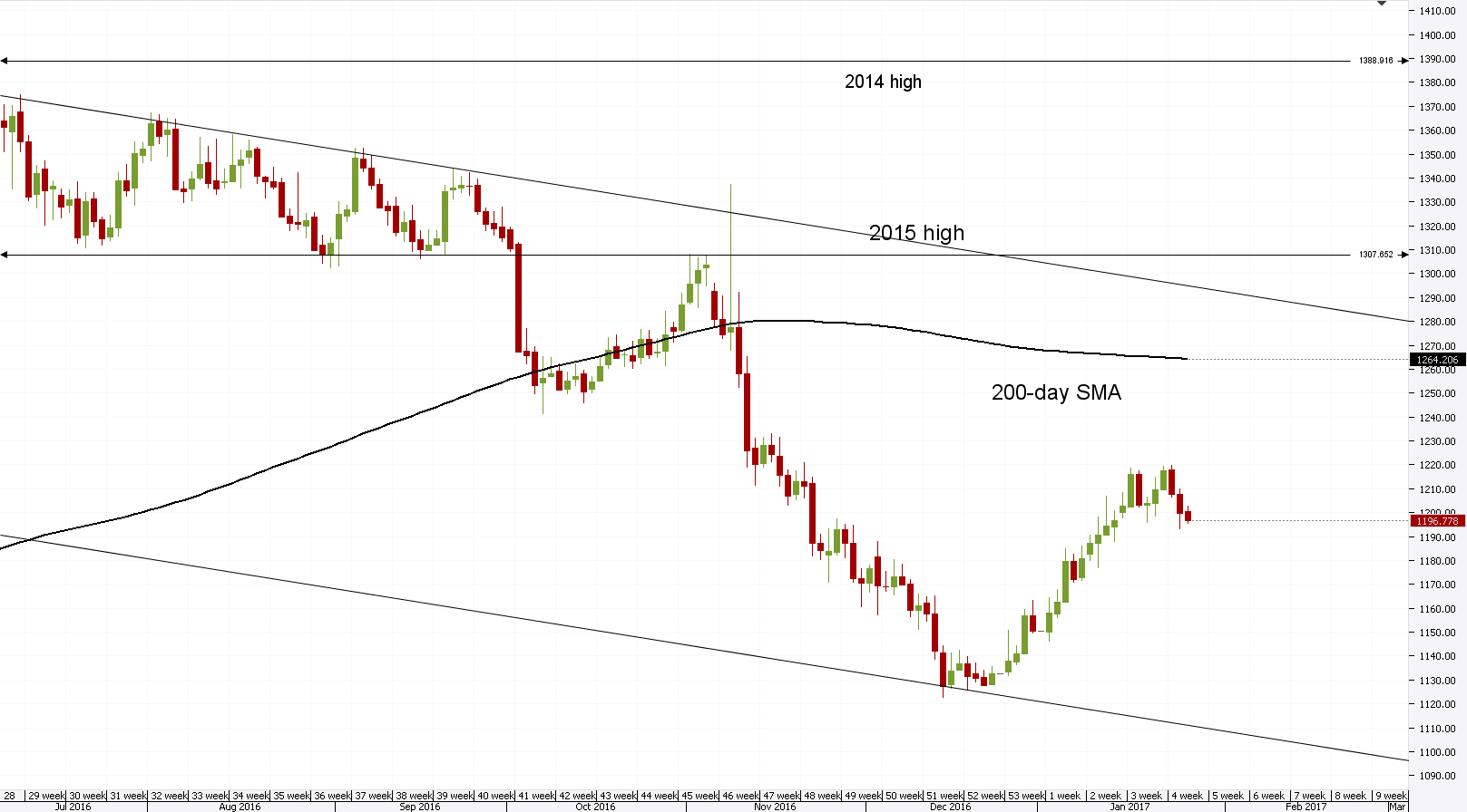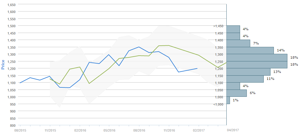 Market participants foresee the price of Gold being around 1,250 in April