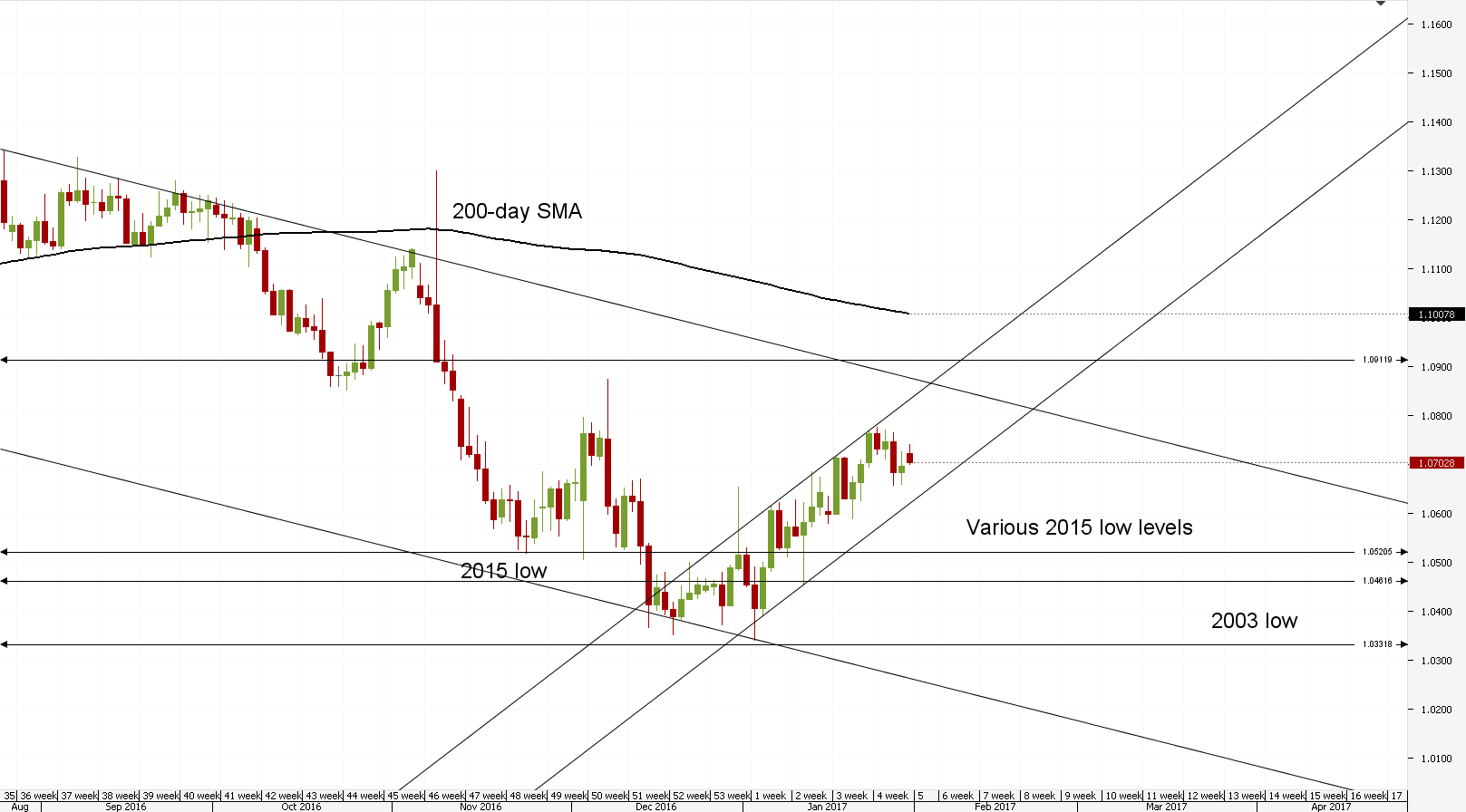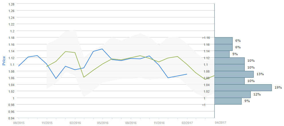 Average forecast says EUR/USD will trade around 1.06 in May