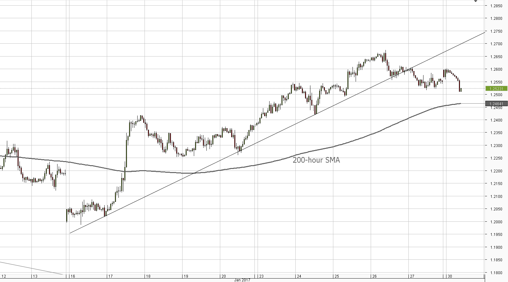 Upon breaking through the up-trend, the Cable entered a short consolidation phase, having remained basically in limbo through Friday. The 1.26 mark appears to be providing psychological resistance, preventing the pair from edging higher. In case a slip below 1.25 occurs, the 200-hour SMA is likely to keep the Pound elevated and, perhaps, provide some bullish momentum.
