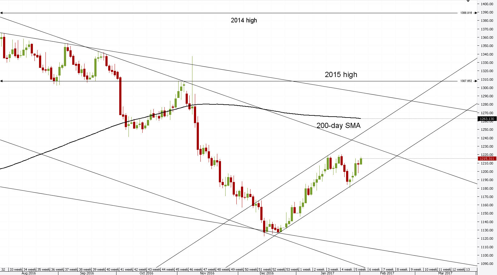 Market participants foresee the price of Gold being around 1,250 in May
