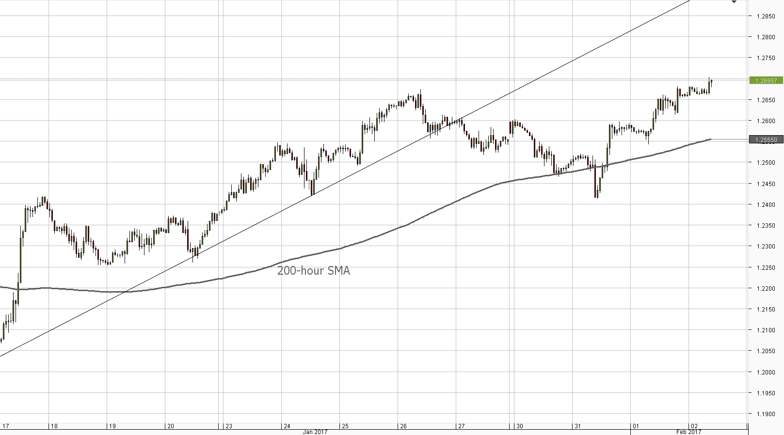 The recovery extended on Wednesday, with strength initially persisting on Thursday as well. The 200-hour SMA keeps providing support, while the main target is the December 2016 high of 1.2775, which the Cable has the potential to reach today.