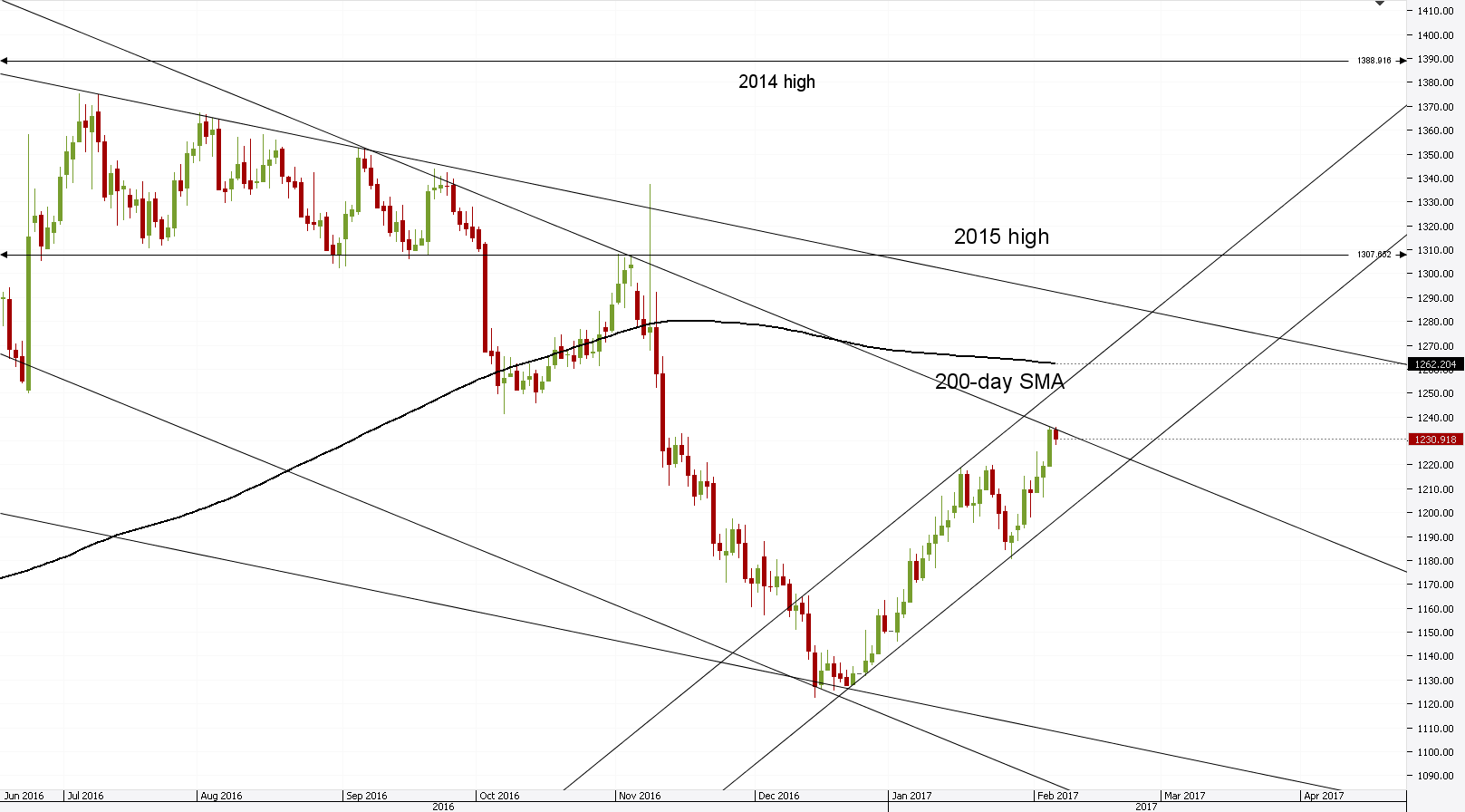 Last week's claims report has no impact on the NFP data for January, set for release on Friday. Economists expect nonfarm payrolls to show a gain of 170,000 jobs, following a sluggish December, when private companies created just 156,000 new jobs, missing the 175,000 gain forecast. Moreover, the unemployment rate is excepted to remain unchanged at 4.7% in January. Wage growth is likely to boost consumer spending and support economic growth in the Q1 of 2017.