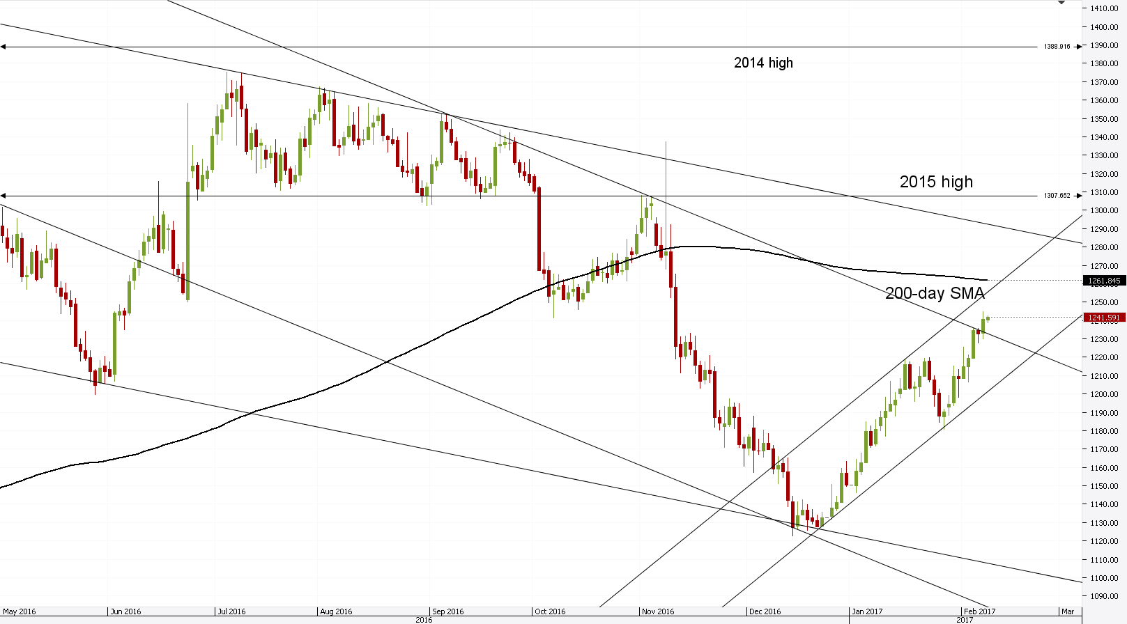 Market participants foresee the price of Gold being around 1,250 in May