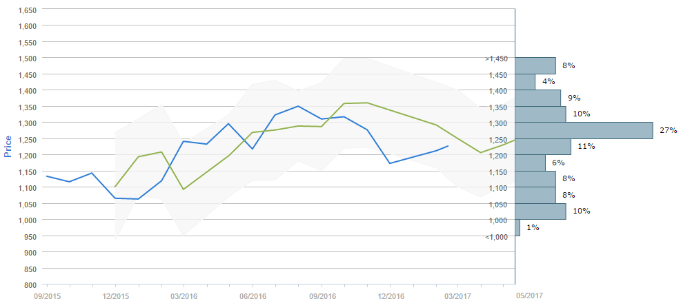 Traders who were asked regarding their longer-term views on gold between January 15 and February 15 expect, on average, to see the metal near 1,250 in May. Generally, 58% (+1%) of participants believe the price will be above 1,250 in ninety days. Alongside, 32% of those surveyed reckon the currencies will trade in the range between 1,000 and 1,200 over the next three months.