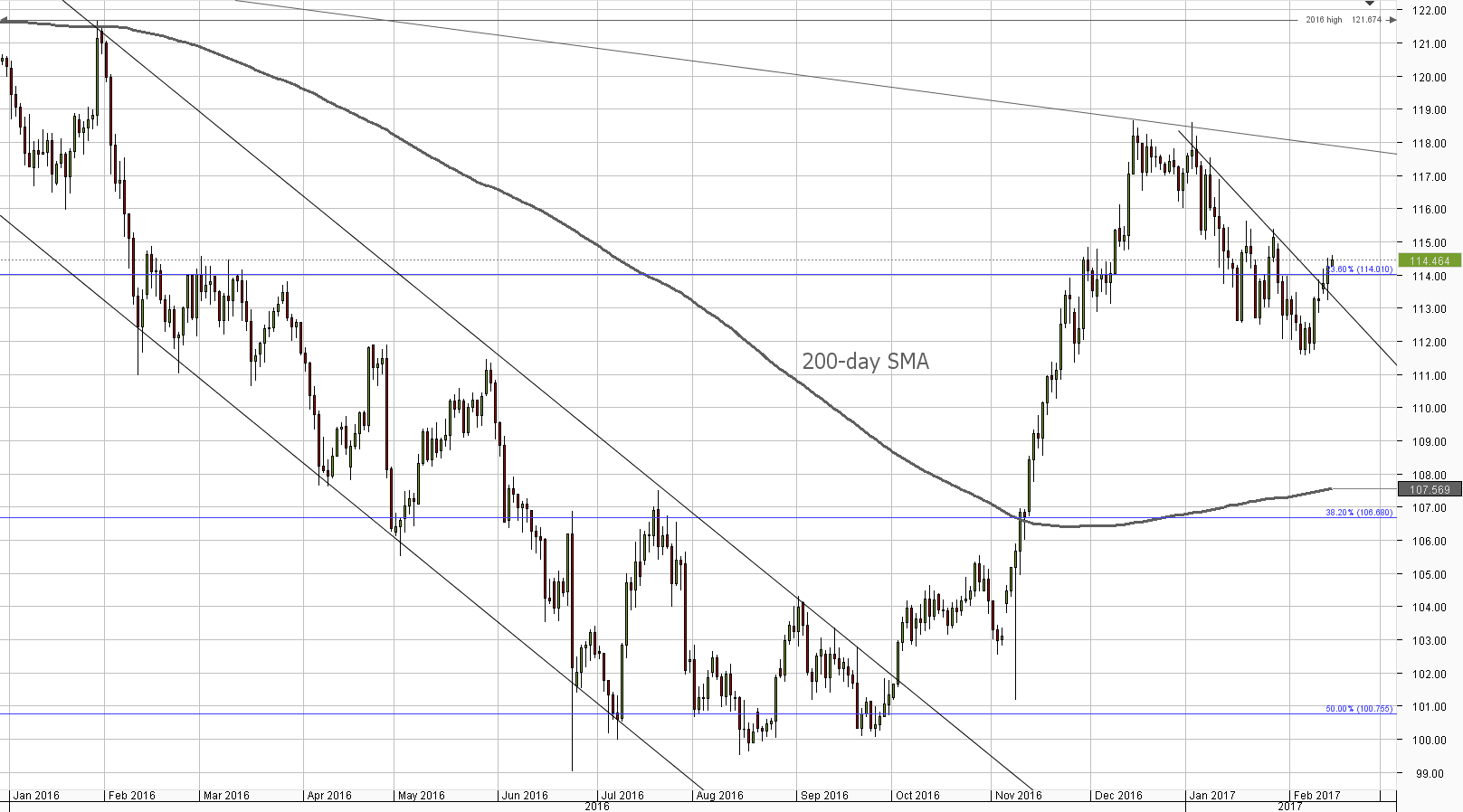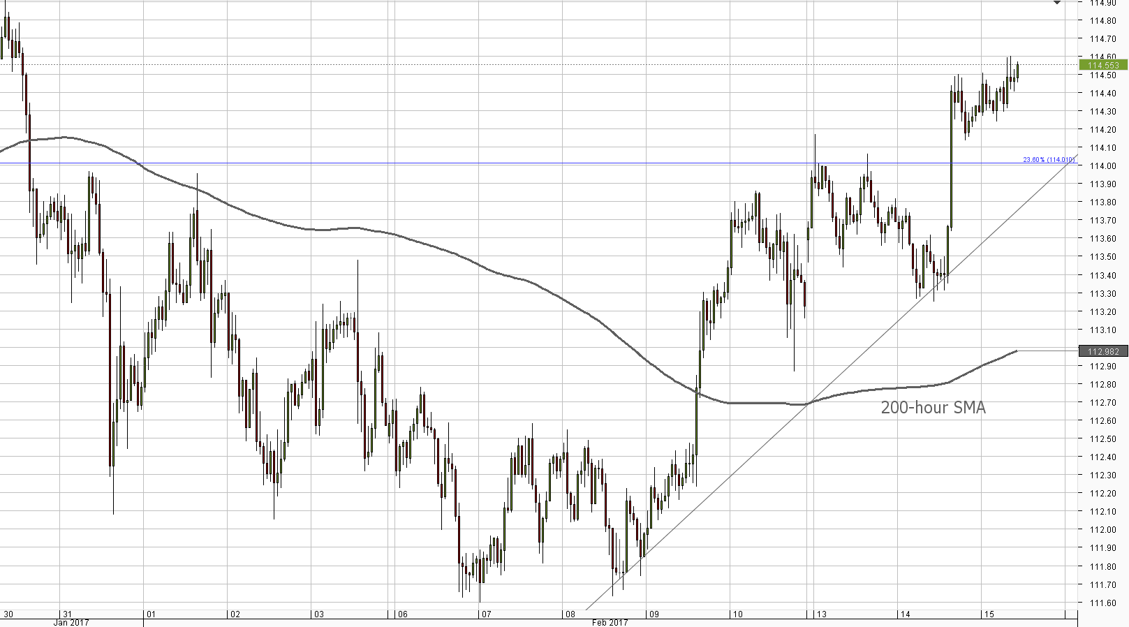 Today focus turns to the US fundamentals, namely the CPI and Retail Sales. The CPI is a measure of price movements by the comparison between the retail prices of a representative shopping basket of goods and services. The purchase power of USD is dragged down by inflation. The CPI is a key indicator to measure inflation and changes in purchasing trends. Core CPI, however, excludes volatile products, such as food and energy, in order to capture a more accurate calculation. The Retail Sales measure the total receipt of retail stores. Monthly percent changes reflect the rate of changes of such sales. Changes in Retail Sales are widely followed as an indicator of consumer spending. The Core Retail Sales, however, excludes the automobile sector. A number of less important readings are due, such as the Industrial Production. It shows the volume of production of US industries, for example factories and manufacturing. Up-trend is regarded as inflationary, which may anticipate interest rates to rise. The Capacity Utilization Rate could also be worth paying attention to, as it is the percentage of the US production capacity, which is actually used over the short-time period. It is indicative of overall growth and demand in the US economy. A high capacity utilization stimulates inflationary pressures.USD/JPY sets eye on 115.00