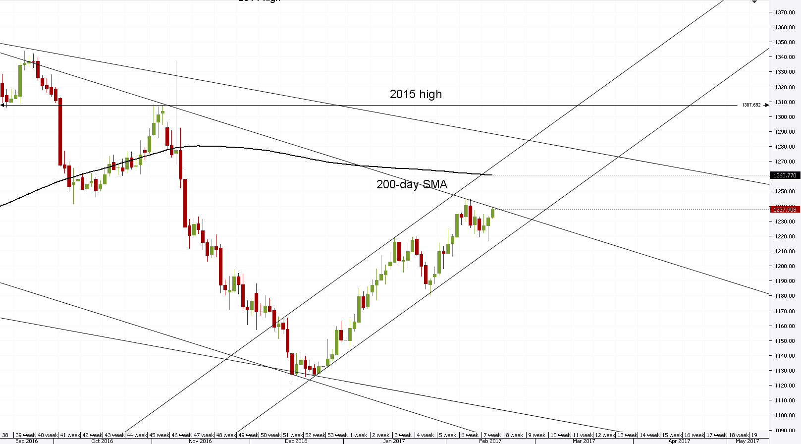 Market participants foresee the price of Gold being around 1,250 in May