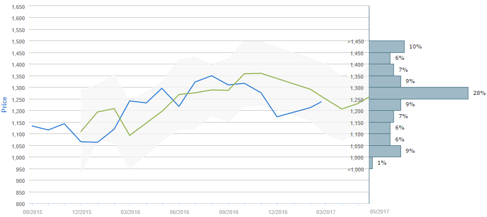 Market participants foresee the price of Gold being around 1,250 in May