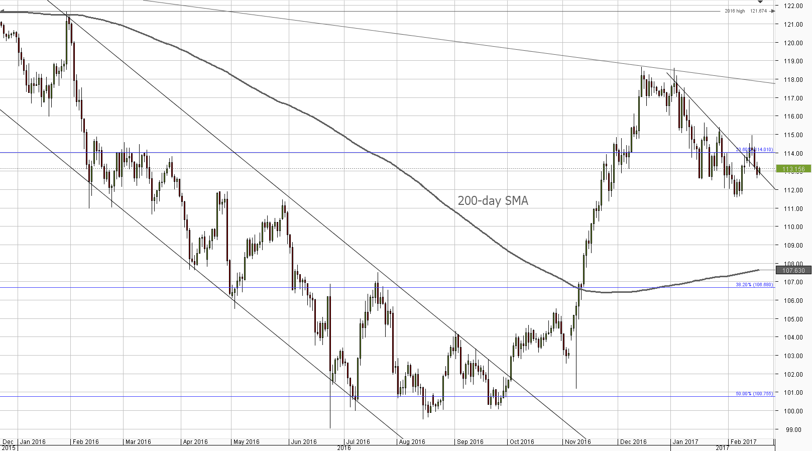 The USD/JPY currency pair followed a less positive for the Greenback path on Friday, having fallen under the 113.00 threshold after successfully maintaining trade above it for a whole week. The given pair still remains in a consolidation trend, meaning there is sufficient room for a decline towards 111.75 today, where the weekly S1 and the lower Bollinger band form support. On the other hand, a rally is also possible, with the 115.00 level being the main target, but with the 20-day SMA and the weekly PP representing immediate resistance circa 113.40 and another obstacle located around 114.40. Meanwhile, technical indicators are unable to confirm the possibility of either scenario.Daily chart