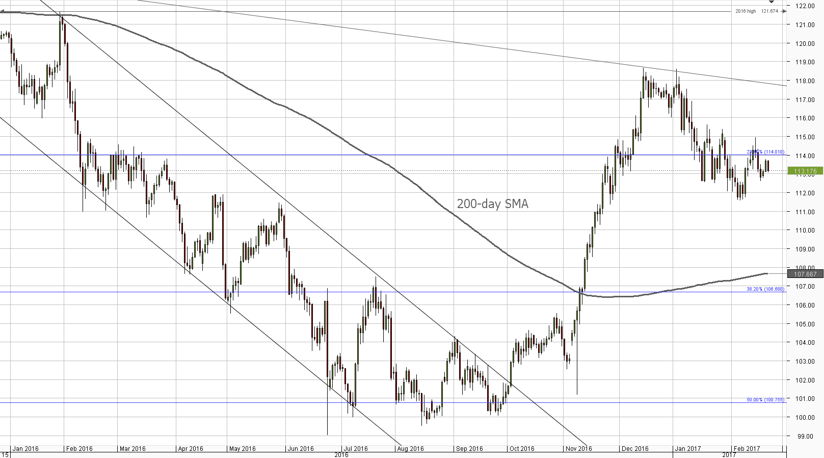 There is only one upcoming fundamental data release which might have some importance – the US Existing Home Sales. It provides an estimated value of housing market conditions. As the housing market is considered as a sensitive factor to the US economy, it generates some volatility for the USD. However, the most impact is expected to be from the FOMC Meeting Minutes. FOMC stands for the Federal Open Market Committee that organizes 8 meetings in a year and reviews economic and financial conditions, determines the appropriate stance of monetary policy and assesses the risks to its long-run goals of price stability and sustainable economic growth. FOMC Minutes are released by the Board of Governors of the Federal Reserve and are a clear guide to the future US interest rate policy. Any news concerning a possible rate hike in March is likely to trigger volatility in USD pairs today.USD/JPY: FOMC Minutes eyed