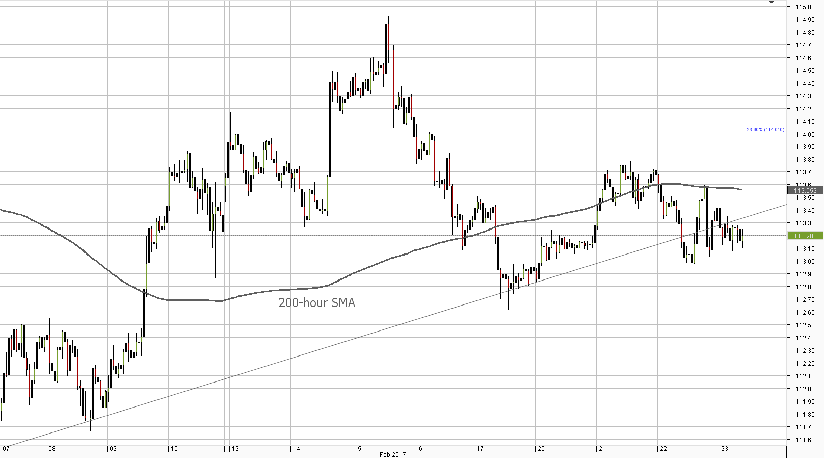 The pair keeps putting the 2.5-week support line to test, with higher risks of a breach present. The 200-hour SMA keeps weighing on the USD/JPY pair and pushing it lower, taking advantage of the lack of fundamental or political impetus. Nevertheless, the hourly chart is unable to provide a clearer picture or suggest the consolidation trend is soon to end.