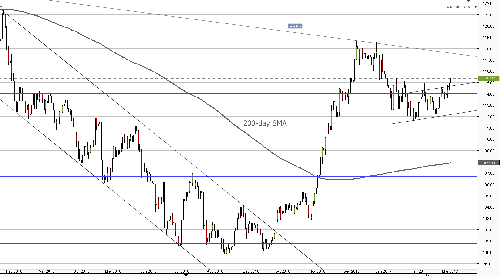 According to the poll that gathered forecasts between February 10 and March 10, traders expect the US Dollar to appreciate to 114.41 yen in three months' time, while the forecast for March 31 was 117.66 yen. It is also worth noticing that 60% of all forecasts fall above 114 yen, which is above the current spot price. The majority of people voted expect the US Dollar to cost somewhere between 114.00 and 115.50 yen in three months, with 17% of the survey participants choosing this trading range. At the same time, the second most popular interval was the 106.50-108.00 one, with 16% of survey participants choosing it.