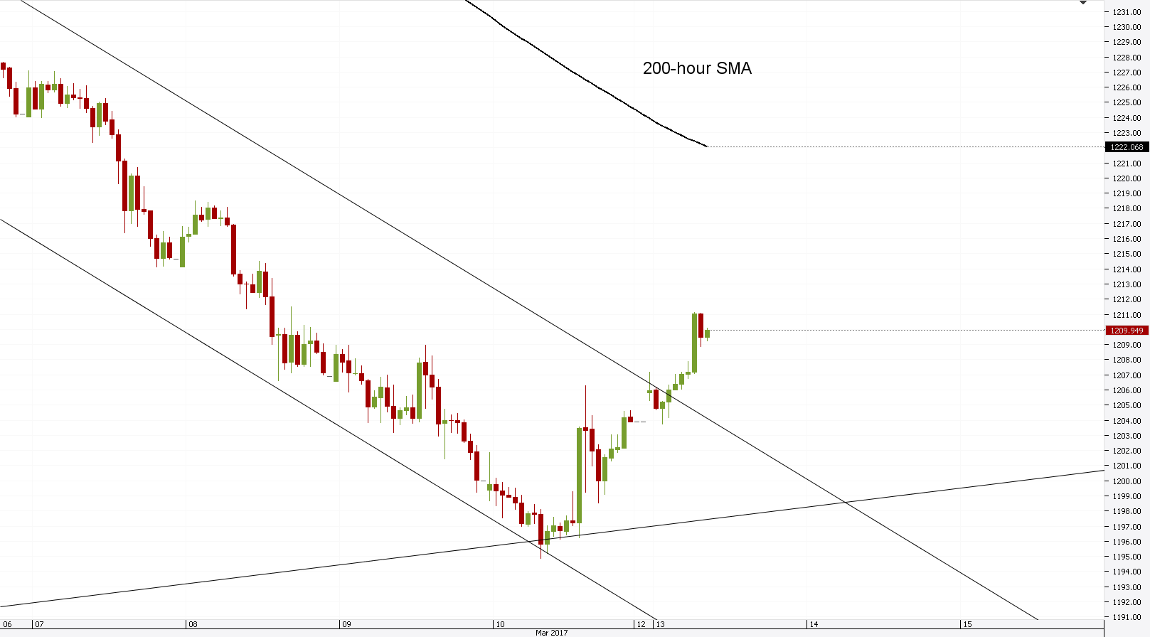 - The bullion opened at 1,205.65