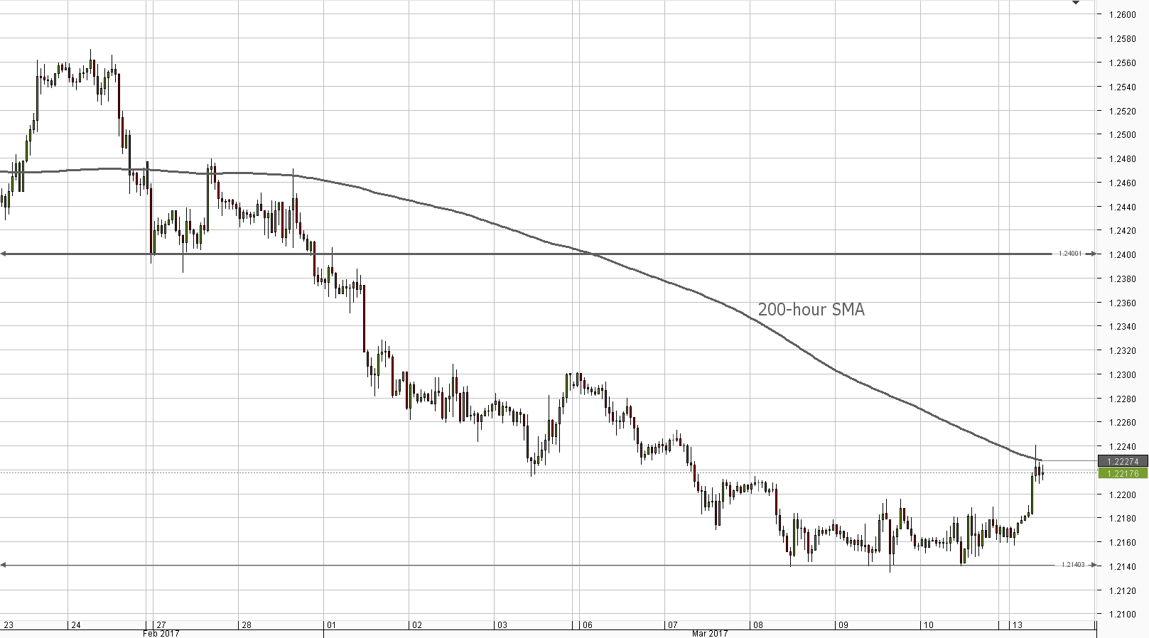 Having found support at 1.2140, investors attempted to take profit from the recent Cable weakness, allowing the 1.22 mark to be retaken today. The 200-hour SMA could now prevent further upside developments, but ultimately a retest of the 1.24 level is possible by week's end.Hourly chart