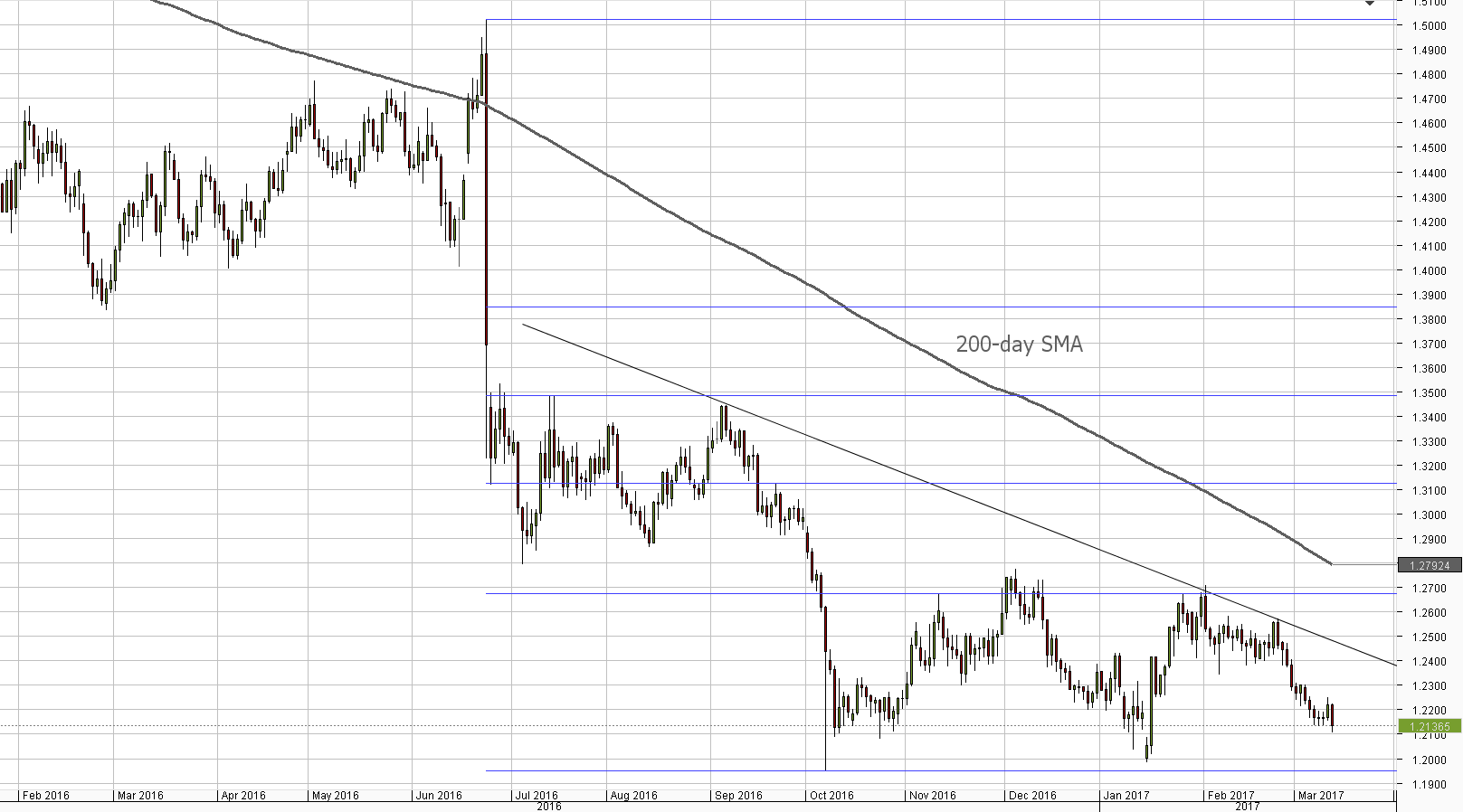On Monday, the monthly S1 prevented British Pound from appreciating further, resulting in another spark of bearish momentum earlier today. Investors swiftly sold the Sterling amid latest news that Article 50 could be triggered by the end of the month. Nevertheless, the tough demand cluster circa 1.21, formed by the monthly S2, the weekly S1 and the lower Bollinger band, is expected to limit today's losses. Moreover, a close under 1.2150 implies that more weakness this week could follow, leading to a drop even under 1.20, rather than the retest of the trend-line around 1.24. Technical indicators are also in favour of the negative outcome today.
