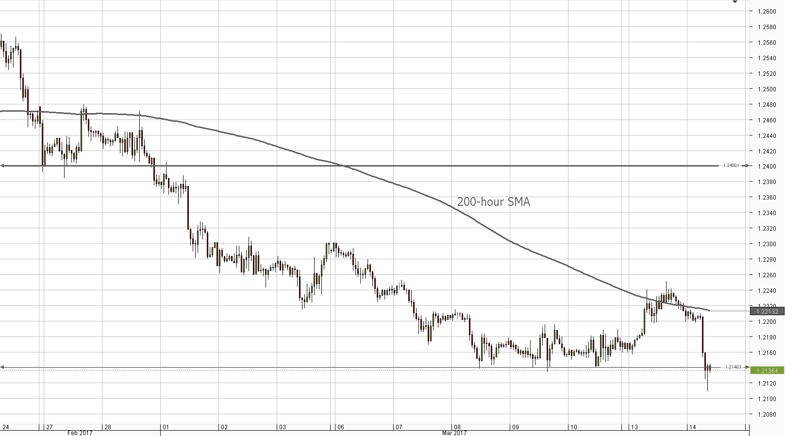 As was anticipated, the 200-hour SMA played its part and kept the Cable at bay, limiting its upside potential yesterday. As a result, the GBP/USD pair slid again, but appears to have found support around 1.2140, a psychological demand level. A drop below this support would allow the exchange rate to reach the current 2017 low – 1.1987.Hourly chart
