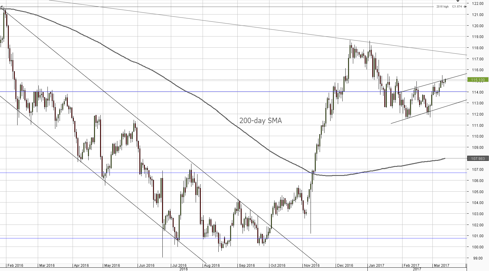 According to the poll that gathered forecasts between February 14 and March 14, traders expect the US Dollar to appreciate to 115.00 yen in three months' time, while the forecast for March 31 was 117.66 yen. It is also worth noticing that 65% of all forecasts fall above 114 yen, which is above the current spot price. The majority of people voted expect the US Dollar to cost somewhere either between 114.00 and 115.50 or between 118.50 and 120.00 yen in three months, with 17% of the survey participants choosing each of these trading ranges. At the same time, the second most popular interval was the 106.50-108.00 one, with 13% of survey participants choosing it.