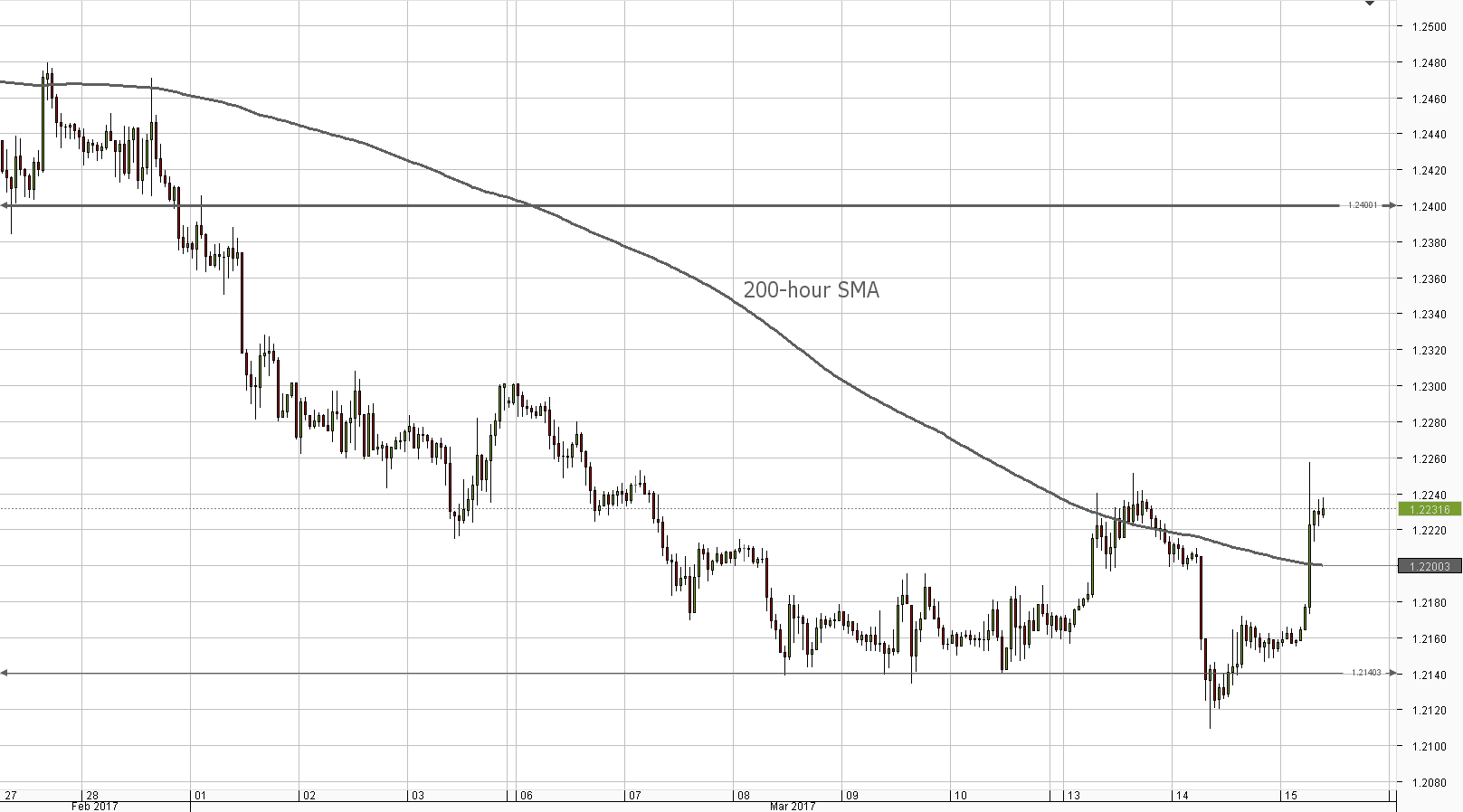 Due to another spark of bullish momentum, the GBP/USD pair managed to take another shot at climbing over the 200-hour SMA, which was bolstering the 1.22 psychological level. The hourly chart is unable to provide any additional information, with exception of the indication that the Cable is now capable of posting more gains.Hourly chart