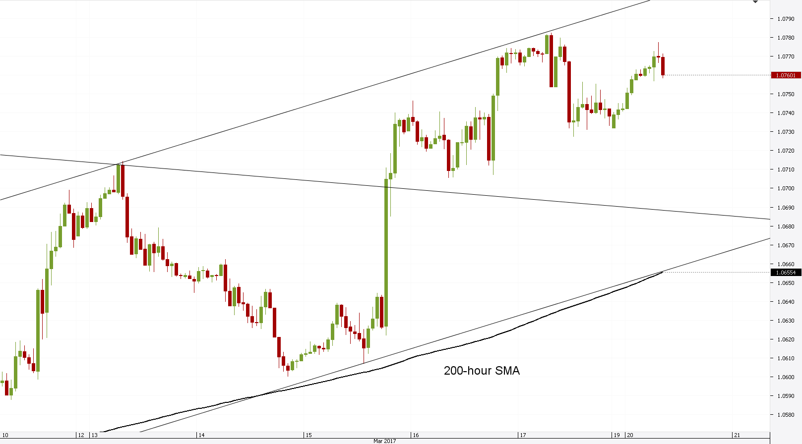 Hourly chart: The hourly chart reveals that it was not the resistance of the monthly R1, which reversed the rate previously. It was the resistance of the medium term ascending channel pattern. After encountering that the currency pair suddenly fell even below the 1.0750 mark. However, most recently the Euro has surged back to the monthly R1, as it is being propelled higher by the 20 and 55-hour SMAs, which seem to have enough strength to push the pair through the monthly resistance level.