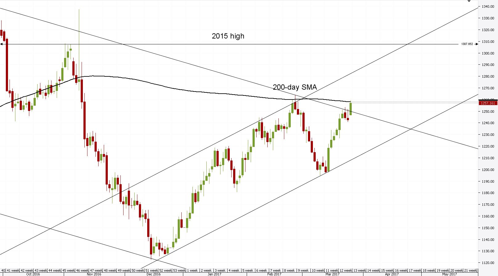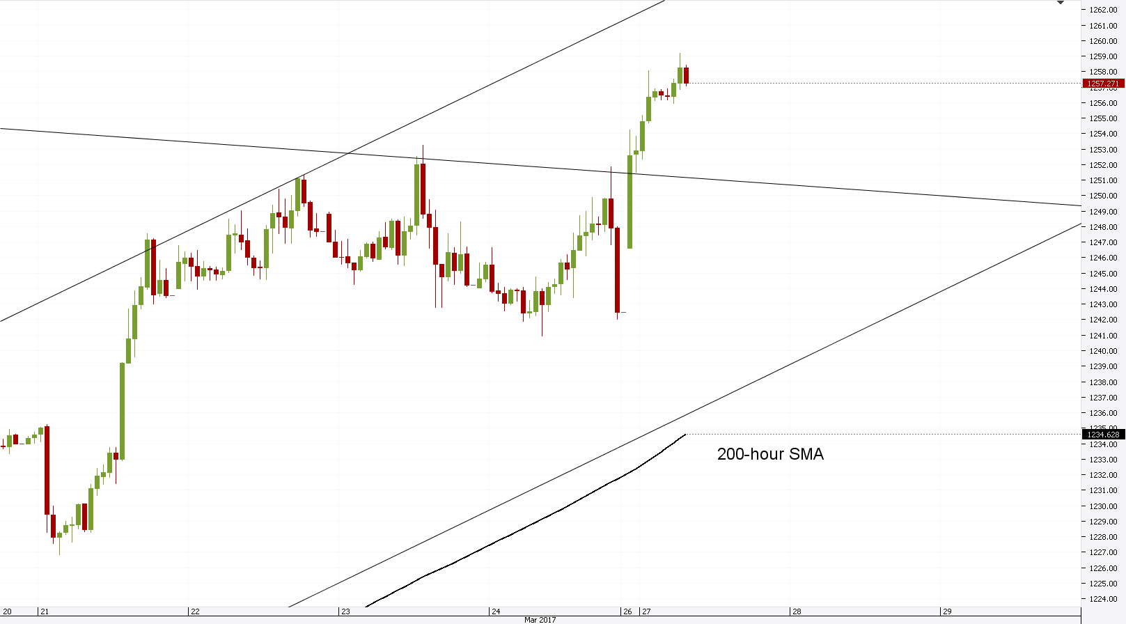 Not only did the yellow metal started Monday's trading session higher, it also has managed to surge above the 1,250 mark and break the resistance, which kept it lower during the past three trading sessions. The reason for that was the fact that Donald Trump could not get his healthcare bill passed in the US on Friday, which indicates that the US economic stimulus might not come. Due to that the Greenback fell.