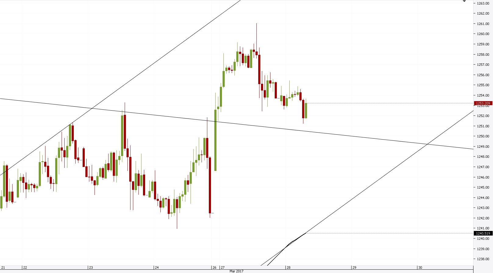 Gold trades lower after touching 1,260 mark