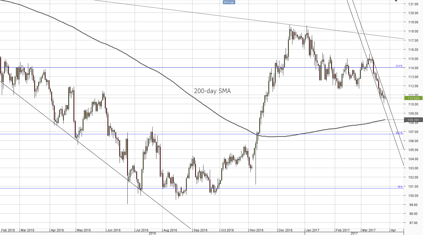 Fortunately for the US Dollar, it managed to avoid substantial losses against the Japanese Yen yesterday. Nonetheless, a new four-month low was reached, but with the USD/JPY pair once again remaining above the 110.60 level, which appears to be providing strong psychological support. As a result, the Greenback has the opportunity to post gains today, as another leg down would cause a breach of this support. Moreover, the weekly S1 and the Bollinger band are somewhat bolstering the psychological demand area, even though technical studies are unable to confirm the possibility of a recovery.Daily chart