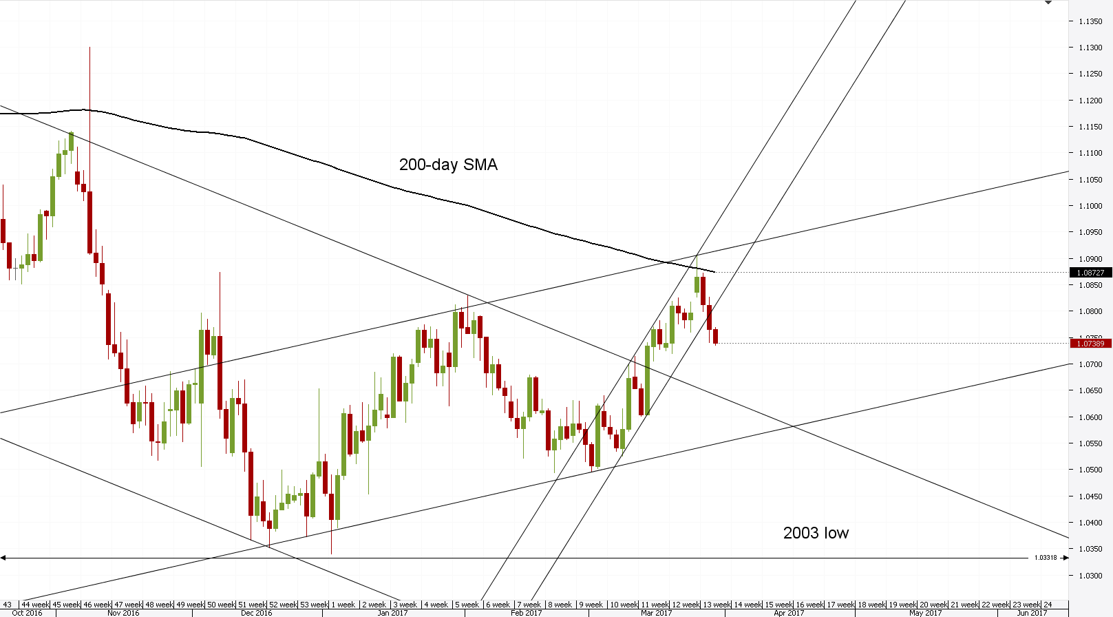 The decline of the Euro against the US Dollar has extended into Thursday's trading session. Various clues indicate that the currency exchange rate is about to fall even lower, as the pair is about to pass the support put up by the weekly S1, which is located at the 1.0736 level.