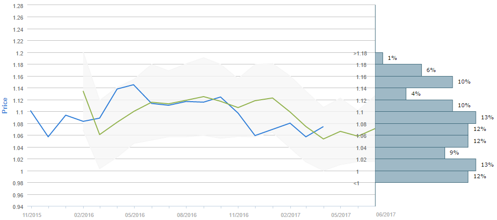 Average forecast says EUR/USD will trade around 1.07 in June