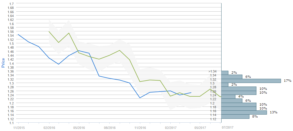 By the end of the next three months traders expect the Cable to rise above the 1.22 major level, as 51% of survey participants believe so. While the current price is around 1.25, the average forecast for July 03 is 1.2296. The 1.30-1.32 range is now the most popular price interval, having 17% of the votes, while on the second place is the 1.14-1.16 price range, with 13% of poll participants choosing it. Furthermore, the 1.16-1.18, the 1.18-1.20, the 1.24-1.26 and the 1.26-1.28 intervals were each selected by 10% of voters.