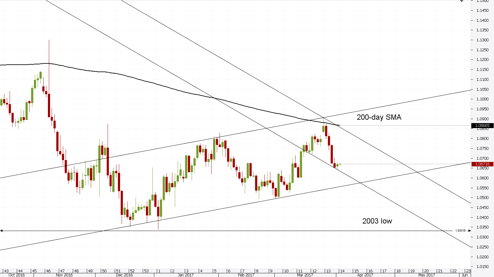 Daily Chart: The daily chart displays that the pair has showed almost no movement whatsoever, shifting from a green to a red doji candle. It appears that EUR/USD has now initiated a downward motion as the redness of the small candle has become more consistent, meaning that 1.0639, representing the 23.6% Fibo retracement of the May-January downfall, might be the ultimate target for today. The scenario is in line with the strong resistance cluster above at 1.0673/85 which the rate has not been able to overstep, leading with the 55-day SMA.