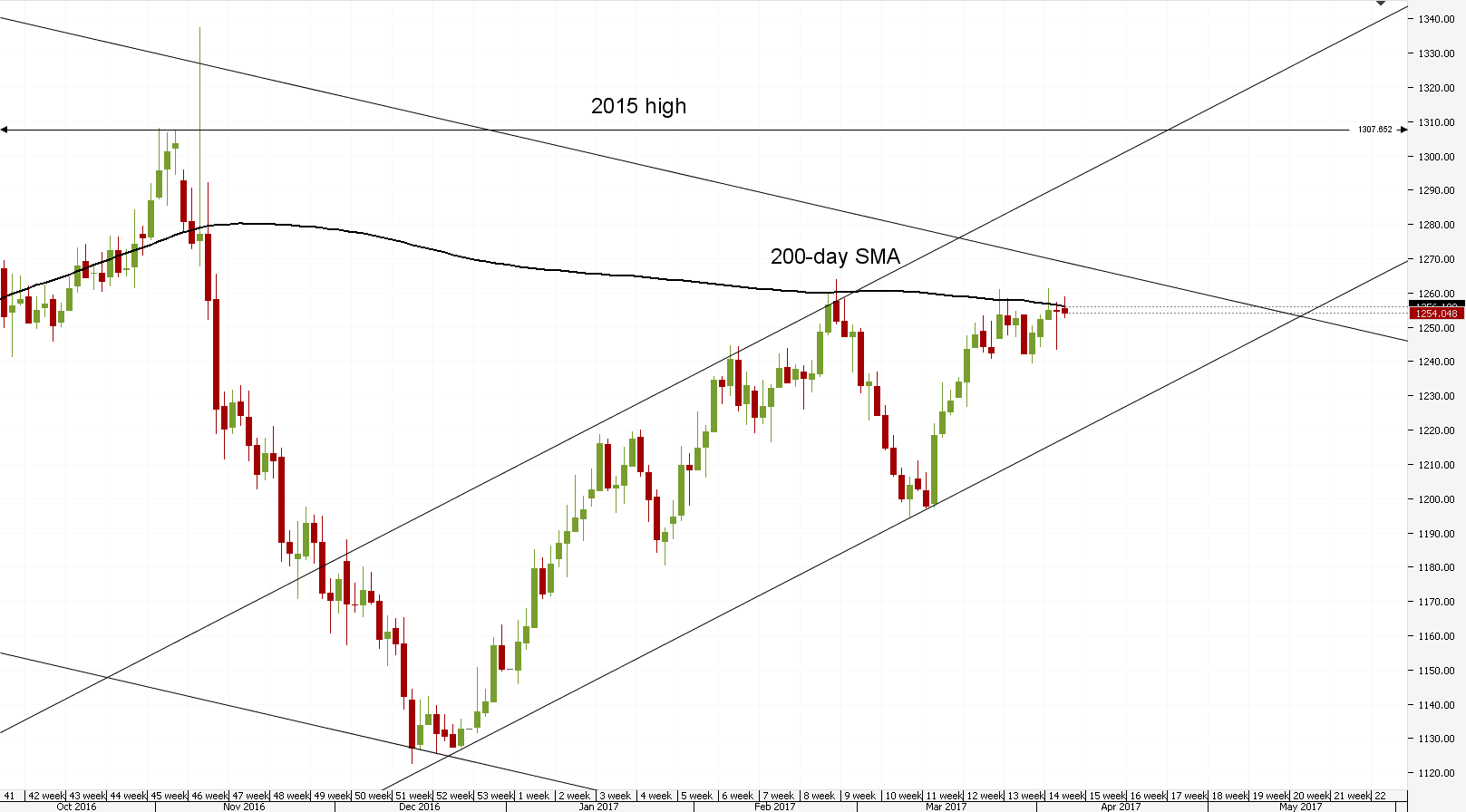 Gold struggles above 1,250 mark