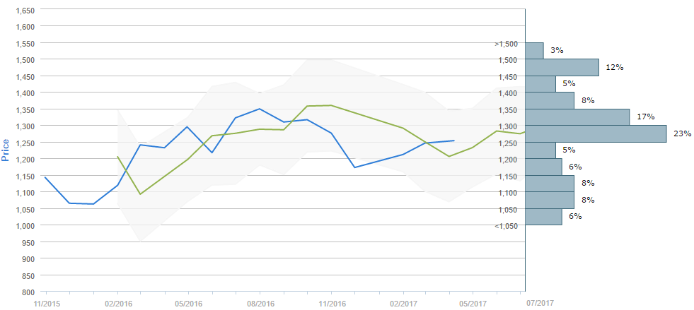 Traders who were asked regarding their longer-term views on gold between March 6 and April 6 expect, on average, to see the metal near 1,300 in July. Generally, 45% of participants believe the price will be above 1,300 in ninety days. Alongside, 42% (+2%) of those surveyed reckon the currencies will trade in the range between 1,100 and 1,300 over the next three months.