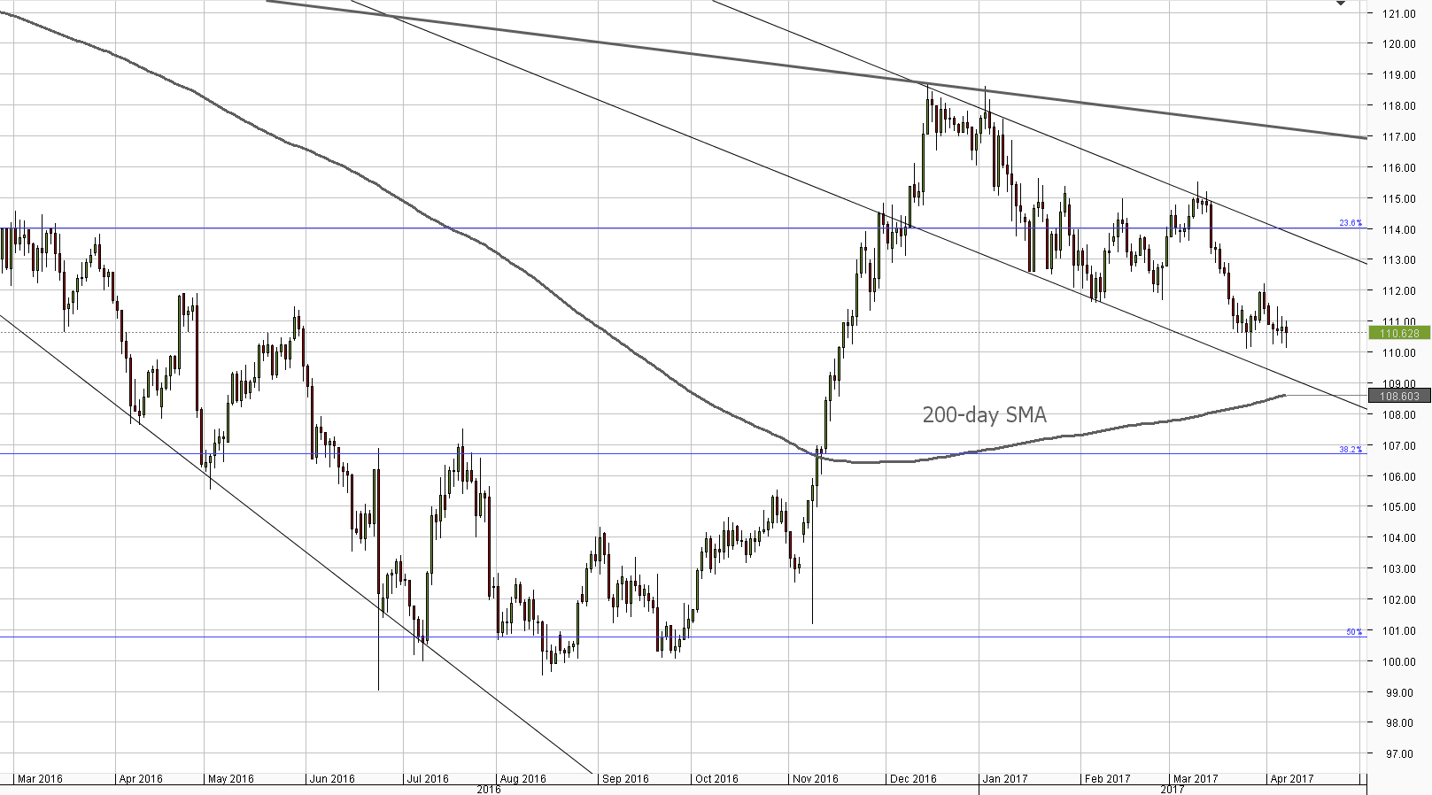 There has been barely any movement registered in the USD/JPY currency pair for the third day in a row yesterday, with the 110.50 mark still proving to be a tough psychological support. Today's NFP data is a double-edged sword, as from one hand the psychological support suggests the Greenback could continue avoiding further losses, while on the other technical indicators imply the given pair could fall under 110.00. Such a decline would even pave the way towards the descending channel's support line at 109.26 to be put to the test, which is also bolstered by the monthly S1, the weekly S2 and the lower Bollinger band. We expected the US Dollar to decline today.Daily chart