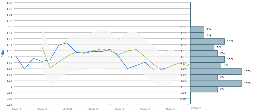 Average forecast says EUR/USD will trade around 1.08 in July