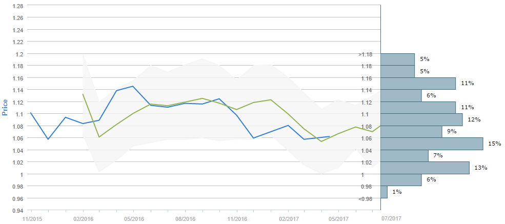 Average forecast says EUR/USD will trade around 1.08 in July