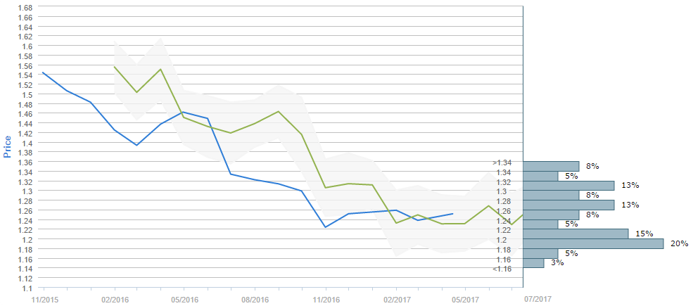By the end of the next three months traders believe the Cable is to rise above the 1.22 major level, as 56% of survey participants believe so. While the current price is around 1.24, the average forecast for July 13 is 1.2444. The 1.18-1.20 range is now the most popular price interval, having 20% of the votes, while on the second place is the 1.20-1.22 price range, with 15% of poll participants choosing it. Furthermore, the 1.26-1.28 and the 1.30-1.32 intervals were each selected by 13% of the voters.