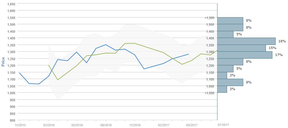 © Dukascopy Bank SATraders who were asked regarding their longer-term views on gold between March 21 and April 21 expect, on average, to see the metal near 1,300 in July. Generally, 54% (+1%) of participants believe the price will be above 1,300 in ninety days. Alongside, 33% (-2%) of those surveyed reckon the currencies will trade in the range between 1,100 and 1,300 over the next three months.