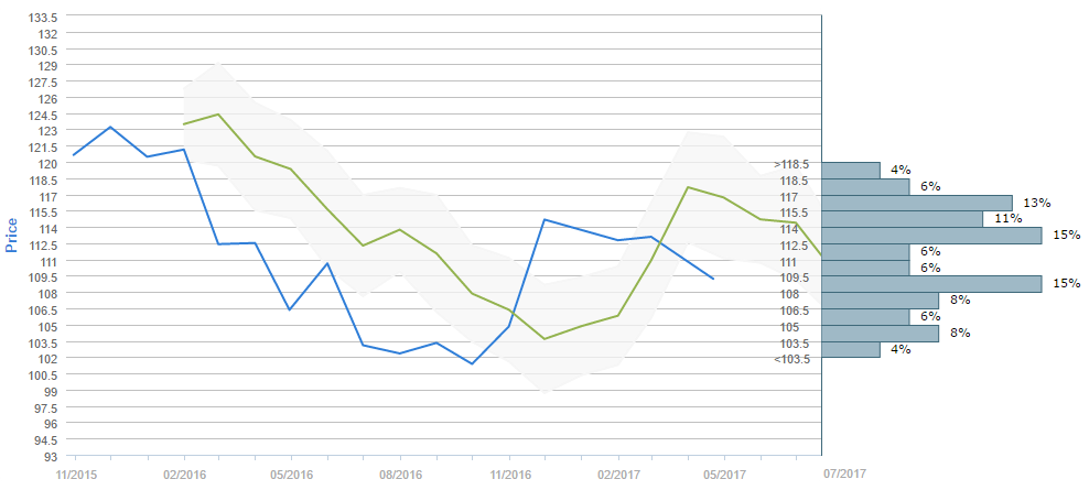 According to the poll that gathered forecasts between March 21 and April 21, traders expect the US Dollar to appreciate to 111.23 yen in three months' time, while the forecast for March 31 was 117.66 yen. It is also worth noticing that 55% of all forecasts fall above 111 yen, which is above the current spot price. The majority of people voted expect the US Dollar to cost somewhere either between 108.00 and 109.50 or between 112.50 and 114.00 yen in three months, with 15% of the survey participants choosing each of these trading ranges. At the same time, the second most popular interval was the 115.50-117.00 one, with 13% of survey participants choosing it.