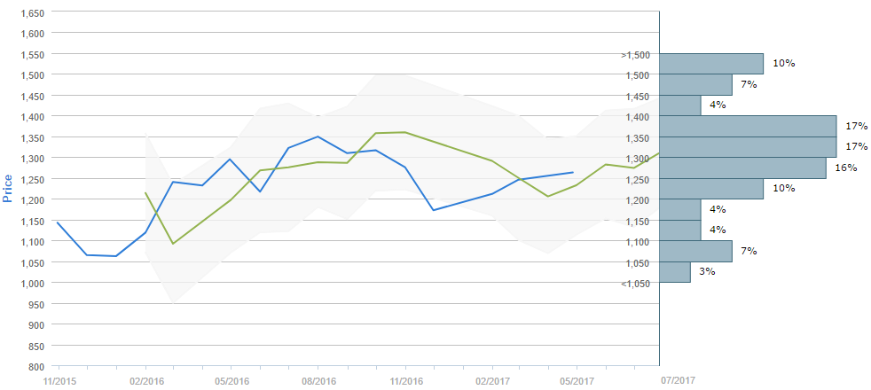 © Dukascopy Bank SATraders who were asked regarding their longer-term views on gold between March 26 and April 26 expect, on average, to see the metal near 1,300 in July. Generally, 55% of participants believe the price will be above 1,300 in ninety days. Alongside, 34% of those surveyed reckon the metal will trade in the range between 1,100 and 1,300 over the next three months.