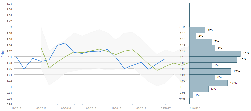 Average forecast says EUR/USD will trade around 1.08 by the end of July