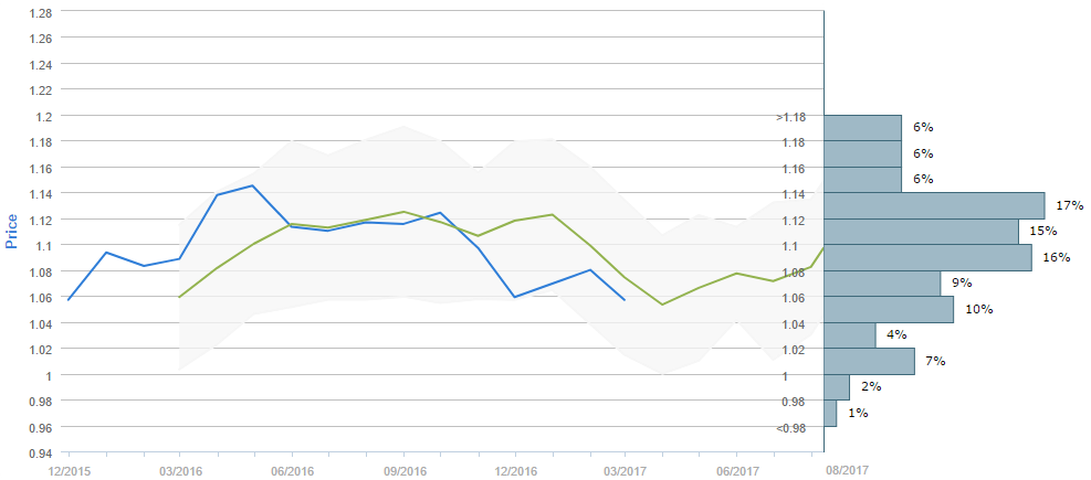 Average forecast says EUR/USD will trade around 1.10 in August