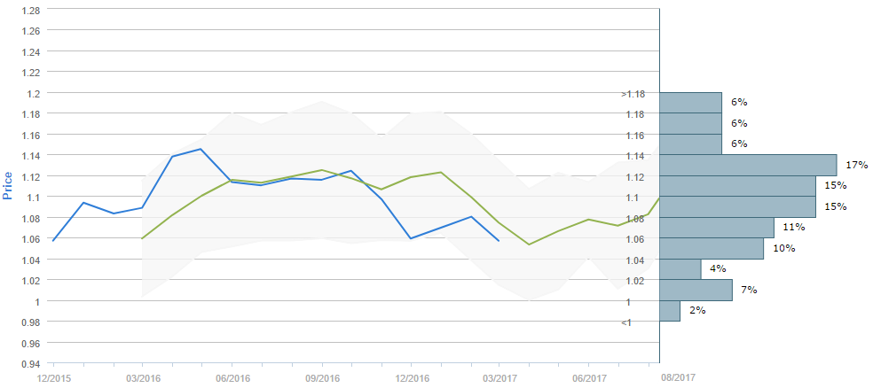 Traders, who were questioned on their longer-term views on EUR/USD between April 11 and today expect, on average, the currency pair to trade around 1.10 in August. In general, 50% of participants believe the exchange rate will be above 1.10 in ninety days, and 35% see it above 1.12. In the meantime, 2% (-1%) of those surveyed reckon the pair will be at parity or below.