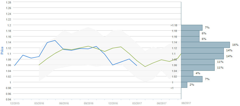 Traders, who were questioned on their longer-term views on EUR/USD between April 12 and today expect, on average, the currency pair to trade around 1.10 in August. In general, 49% (-1%) of participants believe the exchange rate will be above 1.10 in ninety days, and 35% see it above 1.12. In the meantime, 2% of those surveyed reckon the pair will be at parity or below.