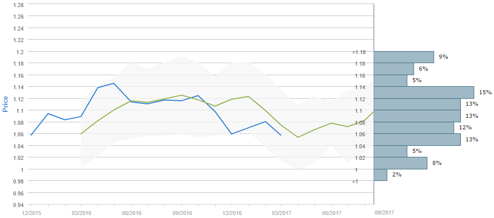 Average forecast says EUR/USD will trade around 1.10 in August