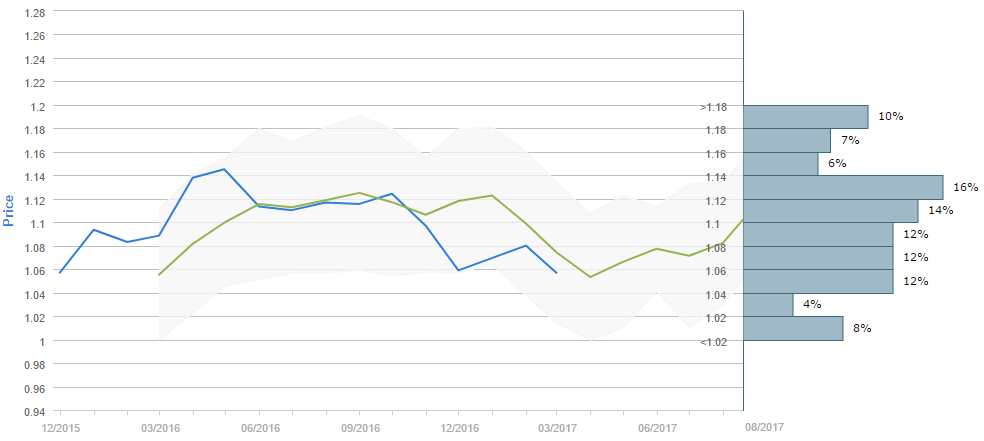 Average forecast says EUR/USD will trade around 1.10 in August